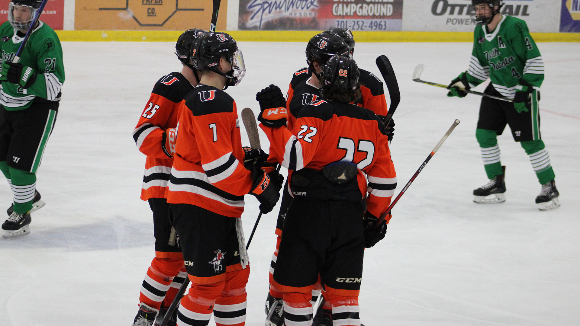 The University of Jamestown ACHA D2 Men's Hockey team traveled to play the Minnesota-Crookston Golden Eagles on Friday, October 11, and Saturday, October 12. The Jimmies came up short in both games.